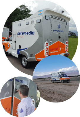 → Unidades in-situ especialmente equipadas para operar en terrenos complejos con médico y chofer enfermero.